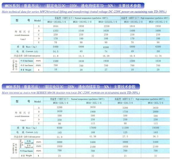 MW16、MW96、MW26-MW36系列吊運鋼帶卷用電磁鐵